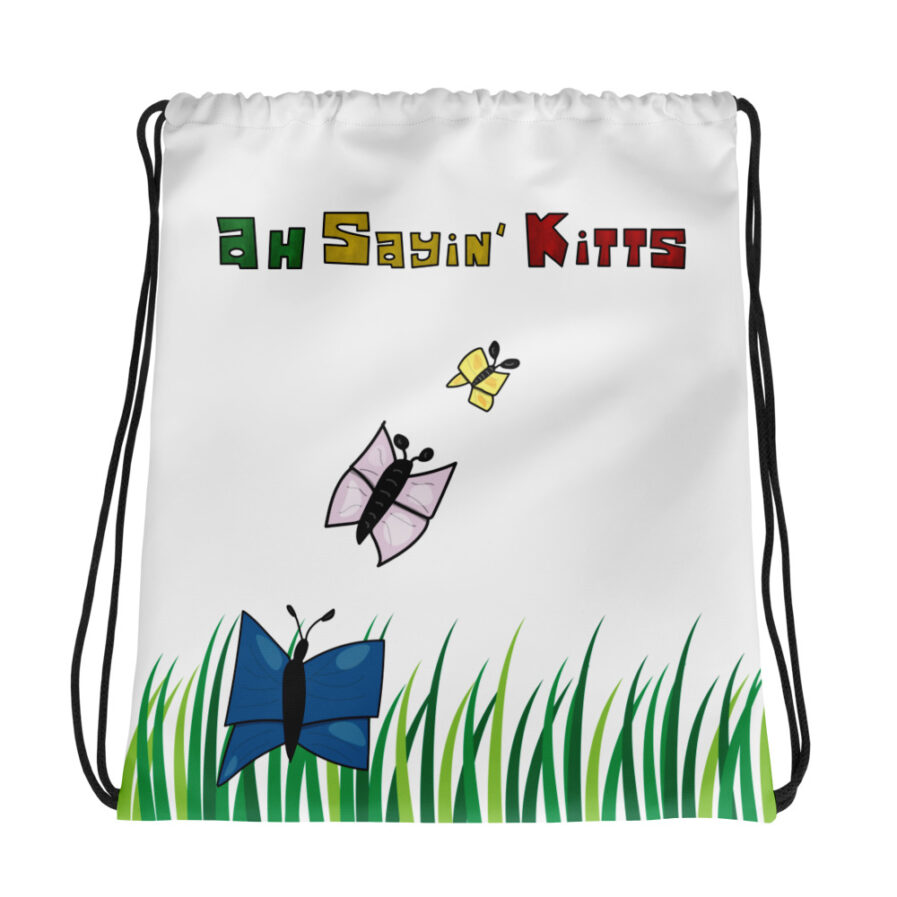 Be the first to review “Drawstring bag with butterflies and “Ah Sayin’ Kitts””