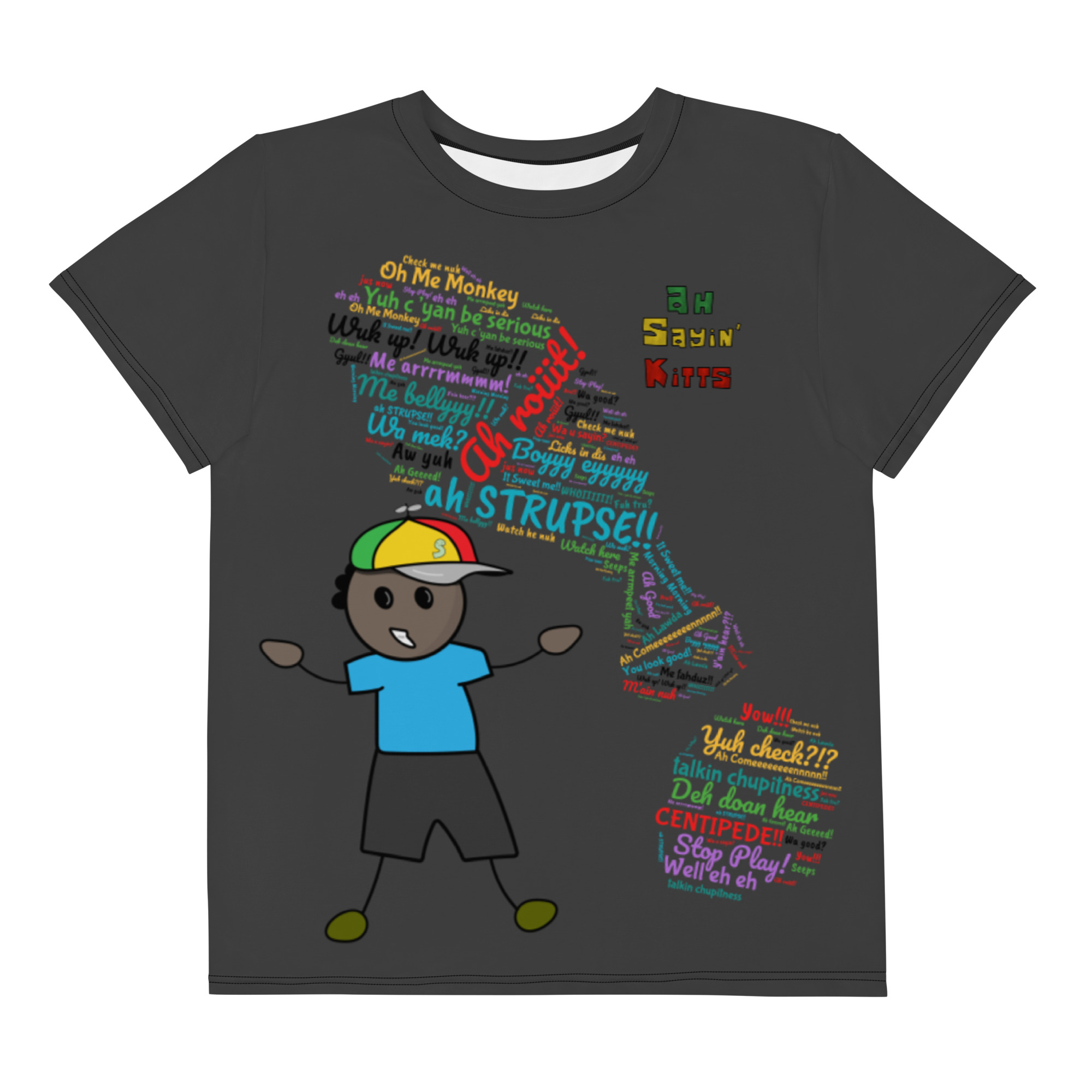 Youth crew neck t-shirt with SKN Word Cloud and Myk-e